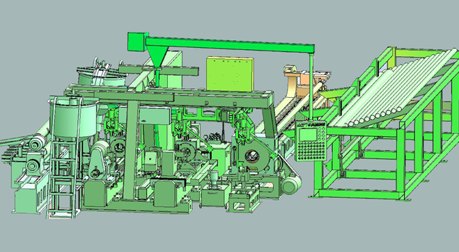 托輥輥皮加工中心是由:儲管架、切斷部件、雙端面成型刀鏜孔部件、吹屑部件、焊接部件、輥皮校圓部件、三點式機械手部件、電氣部件、氣動部件、液壓部件,共十大部件組合而成。將目前托輥輥皮加工的三個獨立工序及設備集約為一個中心,實現(xiàn)了上料和輥皮流轉(zhuǎn)環(huán)節(jié)的自動化,完成了切管、鏜孔、把軸承座旋壓(焊接)到管體、輥皮校圓除銹。輥皮的生產(chǎn)周期≤1分鐘,班產(chǎn)能≧500支。操作人員由原來的3人以上,減少到了1人,由半機械化實現(xiàn)了四工位自動聯(lián)動加工,降低了人工費用,提高了生產(chǎn)效率。更主要的優(yōu)點是把產(chǎn)品的質(zhì)量控制,由操作人員的技能掌控,轉(zhuǎn)化成了由設備及程序來保障,提高了產(chǎn)品的優(yōu)質(zhì)率,增加了輥皮除銹校圓環(huán)節(jié),使托輥圓徑向跳動量降到了0.15,比****標準提高了3-5倍。 主要技術(shù)特點: 1. 3工位4點式平移機械手。 2.輥皮鏜孔采用多刃式成型鏜孔刀(專利)。 3.多刀式輥皮除銹校圓加工工藝(專利)。 4.下料、鏜支口及旋壓均采用數(shù)控控制技術(shù),加工精度為±0.06。 5.鏜止口和旋壓均采用自動三爪夾緊定位,比傳統(tǒng)V型鐵定位夾緊,降低了圓徑向跳動量(專利)。