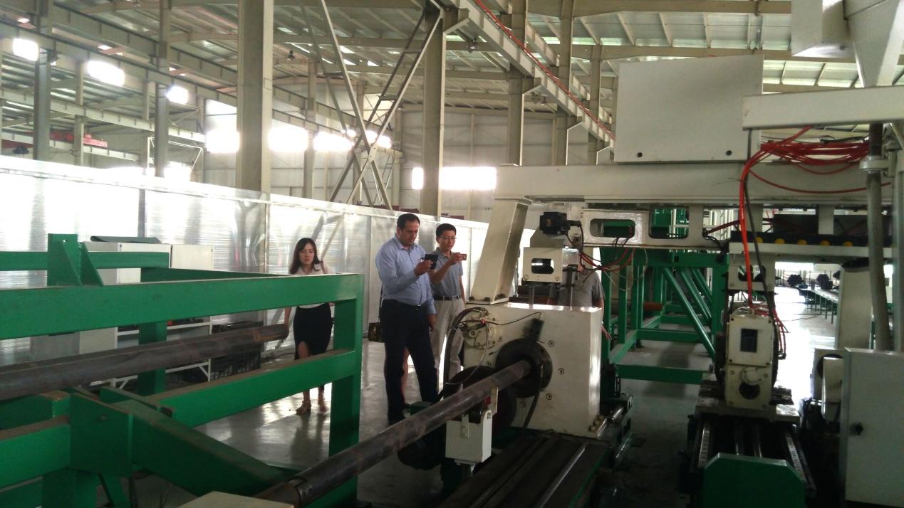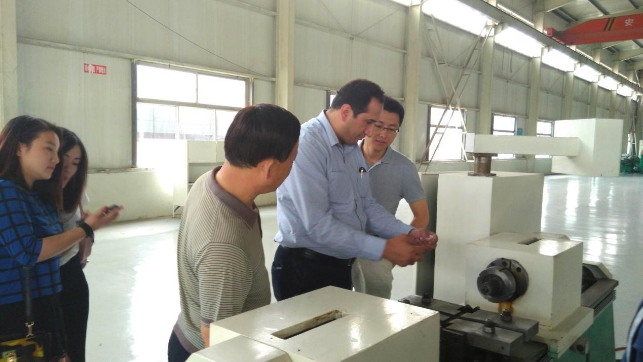 伊朗客商參觀我公司SGY-159Ⅰ數(shù)控托輥壓裝機(jī)床